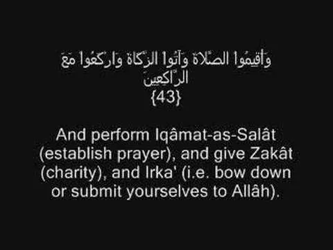 43. And establish prayer and give zakah and bow with those who bow [in worship and obedience].